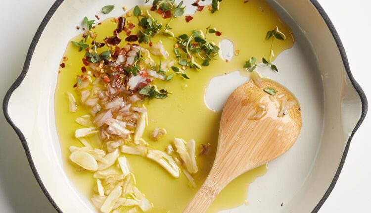 पण सावध रहा, तुम्ही प्रीहीट करताना जास्त गरम देखील करू शकता, ज्यामुळे तेल धुम्रपान करू शकते. बहुतेक पाककृती पॅनमध्ये तेल गरम करण्यापासून सुरू होतात. स्टोव्ह गरम होण्यास सहसा थोडा वेळ लागतो, म्हणून आम्ही तेल ओततो आणि नंतर ते तापत असताना दुसरे काहीतरी करण्यासाठी आमची पाठ फिरवतो. तुम्हाला ते कळण्याआधी, तुम्हाला धुराचे लोट दिसत आहेत, याचा अर्थ पॅन गरम आहे आणि शिजवण्यासाठी तयार आहे, बरोबर? चुकीचे! बऱ्याच तेलांना स्मोक पॉईंटपर्यंत किंवा त्याच्या मागे गरम केल्यावर खराब चव येते असे नाही, परंतु जेव्हा तेले त्यांच्या स्मोक पॉईंटपर्यंत गरम केले जातात किंवा वारंवार गरम केले जातात तेव्हा ते खराब होऊ लागतात, फायदेशीर अँटिऑक्सिडेंट नष्ट करतात आणि हानिकारक संयुगे तयार करतात. तथापि, तेलाचा धुराचा बिंदू खरोखर तापमान श्रेणी आहे (ऑलिव्ह ऑइलचे तापमान 365°F आणि 420°F दरम्यान असते), निरपेक्ष संख्या नाही—ते तेलाच्या प्रकारावर आणि तेलाच्या रासायनिक गुणधर्मांवर परिणाम करणाऱ्या अनेक घटकांवर अवलंबून असते. कोणतेही तेल धुम्रपान होईपर्यंत गरम न करून तुम्ही सुरक्षितपणे आणि आरोग्यपूर्ण शिजवू शकता. तुमचे तेल शिजवण्यासाठी पुरेसे गरम होण्यासाठी, ते चमकेपर्यंत गरम करा.