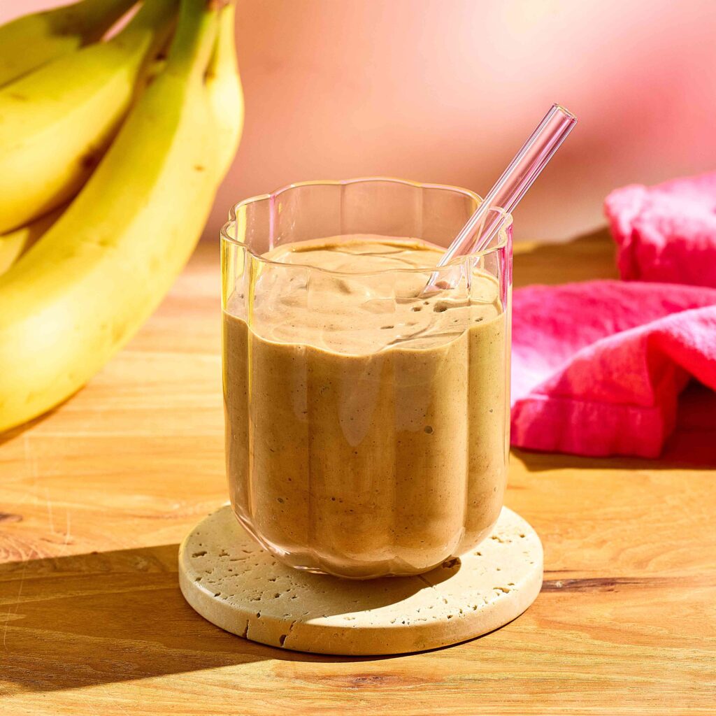 ही PB&J-प्रेरित ग्रीन स्मूदी रेसिपी एक जलद आणि निरोगी नाश्ता बनवते जे तुम्ही जाता जाता सहज घेऊ शकता.