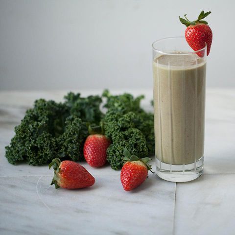 पीनट बटर-स्ट्रॉबेरी-काळे स्मूदी