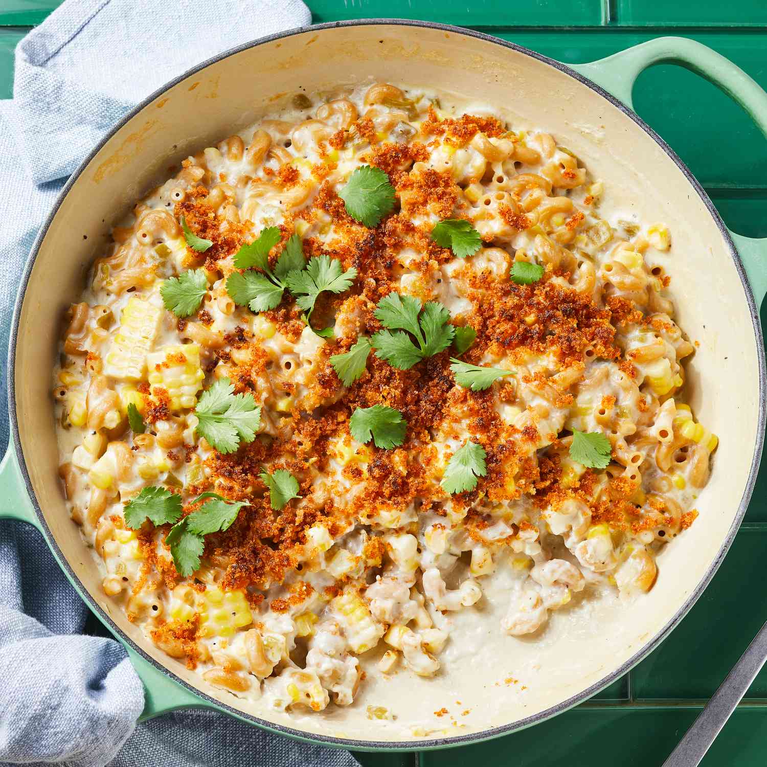 गडद पानेदार कोलार्ड्स ठळक चव देतात आणि या निरोगी स्किलेट मॅक आणि क्रिस्पी टॉपिंगसह चीज रेसिपीमध्ये कॅल्शियम वाढवतात. जर तुमच्याकडे कोलार्ड नसेल तर काळे, स्विस चार्ड आणि पालक हे स्वादिष्ट पर्याय आहेत.