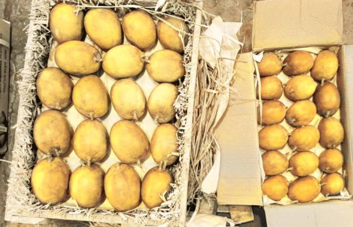 कोकणातील हापूस आंब्याची पहिली पेटी जरी जानेवारी महिन्यात बाजारात आली असली तरी आंब्याचा हंगाम अद्याप सुरू झालेला नव्हता. गेल्या दहा दिवसांपासून बाजारात तुरळक पेट्या येत होत्या. मात्र कोकणातील आंब्याच्या पेट्यांची आवक थेट १०० वर पोहोचली. या हंगामात मोठ्या संख्येने पेट्या आज मार्केटमध्ये आल्याने व्यापाऱ्यांनी आणि ग्राहकांनी कोकण हापूसचे जोरदार स्वागत केले. हा आंबा पहिल्या मोहोराचा आहे. लांबलेला पाऊस आणि वाढलेल्या थंडीचा परिणाम हापूस आंब्याच्या उत्पादनावर झाला आहे. वातावरणातील या बदलाचा हापूसच्या पहिल्या मोहोराला जोरदार फटका बसल्याने पहिल्या मोहोराच्या आंब्याची आवक बाजारात कमी राहणार आहे. आज शंभर पेट्या बाजारात आल्यामुळे ग्राहकांची या पेट्यांवर अक्षरशः उड्या पडल्या. आकाराने लहान असलेला आंबा दीड हजार रुपये तर मोठ्या आकाराचा आंबा अडीच हजार रुपये डझन या दराने विकला गेला.