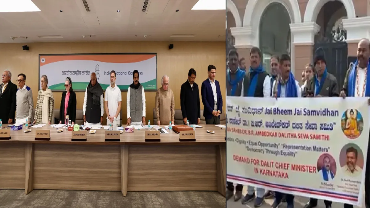 नवी दिल्ली. दिल्लीतील काँग्रेस मुख्यालयात कार्यकारिणीची बैठक सुरू असून कर्नाटकातील कार्यकर्ते बाहेर आंदोलन करत आहेत. अखिल भारतीय काँग्रेस कमिटीच्या मुख्यालयाबाहेर कर्नाटकातील काही लोकांनी घोषणाबाजी करत राज्यात दलित मुख्यमंत्री करण्याची मागणी केली. कर्नाटकचे विद्यमान गृहमंत्री जी.परमेश्वरा रेड्डी यांना राज्याचे पुढील मुख्यमंत्री करावे, असे आंदोलकांचे म्हणणे आहे. काँग्रेस कार्यकारिणीच्या बैठकीत राष्ट्रीय अध्यक्ष मल्लिकार्जुन खर्गे, लोकसभेतील विरोधी पक्षनेते राहुल गांधी, सोनिया गांधी यांच्यासह अनेक ज्येष्ठ नेते उपस्थित आहेत. पक्षाच्या हायकमांडपर्यंत आपले म्हणणे मांडण्यासाठी आंदोलकांनी हा मार्ग पत्करला.