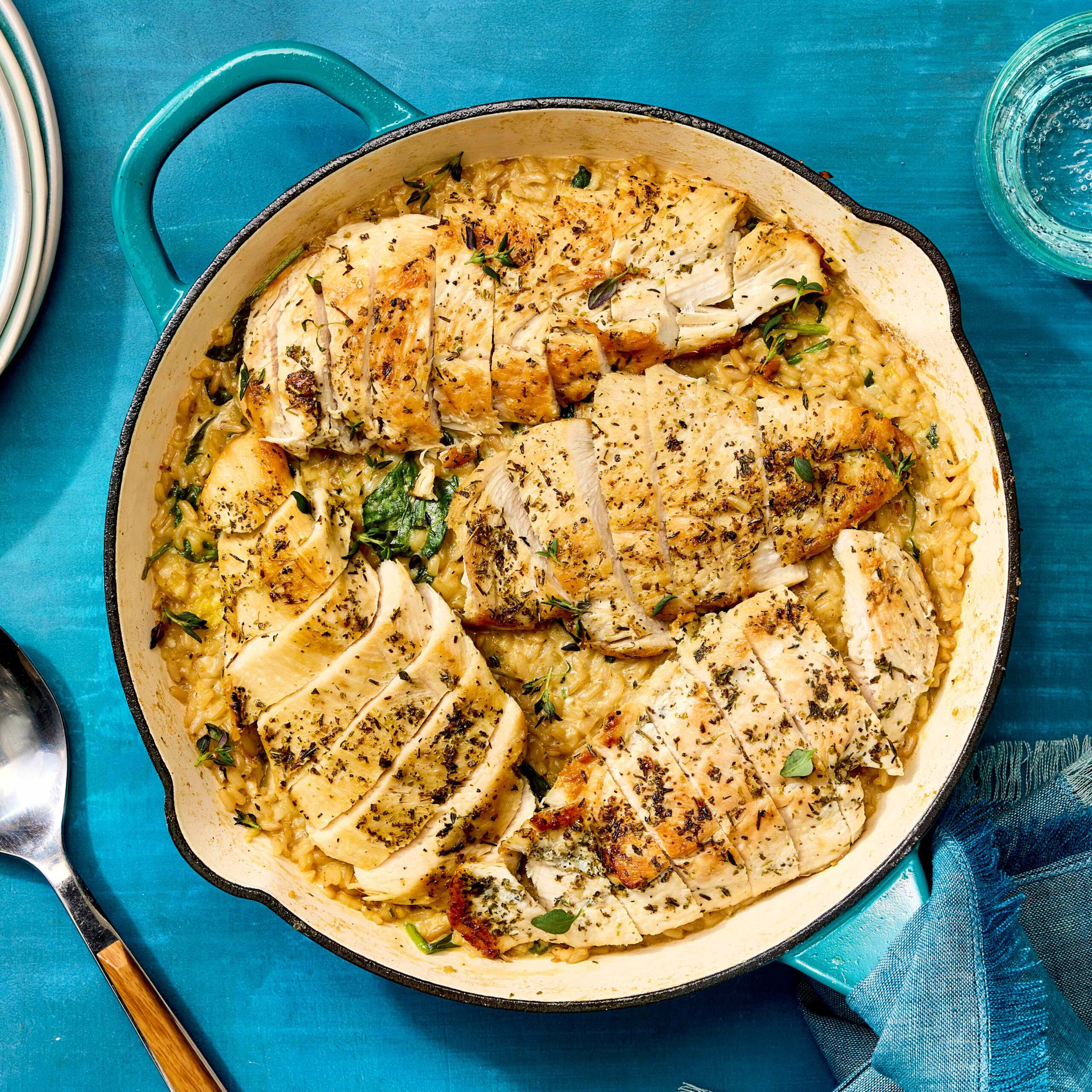चिकन आणि भात हे एका कारणास्तव क्लासिक जेवण आहे. प्रथिने आणि संपूर्ण धान्यांनी भरलेल्या, या पाककृती चिकनला तपकिरी, पांढरा आणि अगदी फुलकोबी तांदूळ एकत्र करून एक दोलायमान डिनर तयार करतात जे तुमच्या टेबलावरील प्रत्येकाला आवडेल. सौदा गोड करण्यासाठी, या सर्व पाककृती फक्त एका भांड्यात, पॅनमध्ये किंवा कढईत एकत्र येतात जेणेकरून क्लीनअप अगदी सोपे होईल. त्यामुळे पुढच्या वेळी तुमच्या हातात हे दोन स्टेपल्स असतील तेव्हा आमची हाय-प्रोटीन क्रिस्पी चिकन आणि राइस स्किलेट कॅसरोल किंवा आमची हाय-प्रोटीन लेमन चिकन आणि राईस स्किलेट तुम्हाला पुन्हा पुन्हा आवडेल अशा डिनरसाठी वापरून पहा.