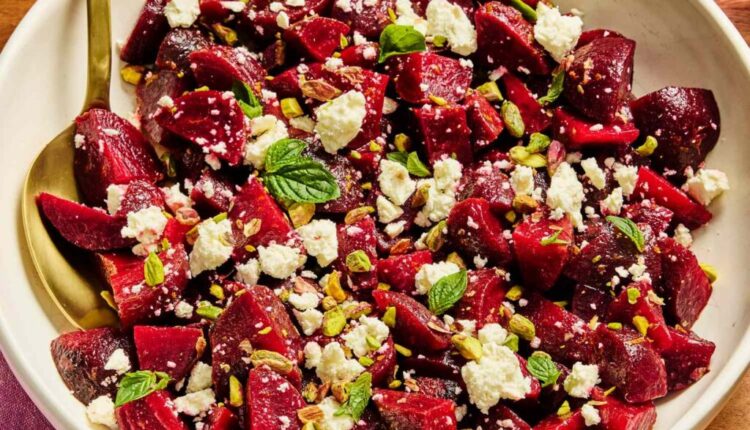 हे दोलायमान चिरलेले कोशिंबीर प्रत्येक चाव्यात मातीचे, तिखट आणि लिंबूवर्गीय स्वादांचे ताजेतवाने संतुलन प्रदान करते. गोड, कोमल पूर्व शिजवलेले बीट चमकदार केशरी-शॅम्पेन व्हिनेग्रेटमध्ये फेकले जाते, त्यानंतर क्रीमी फेटा आणि कुरकुरीत पिस्ते टाकले जातात. मधाचा इशारा आंबटपणा कमी करतो, तर ताज्या पुदीनाचा पर्याय थंड, सुगंधी फिनिश जोडतो. ही एक साधी बाजू आहे जी भाजलेले चिकन, ग्रील्ड फिश किंवा हॉलिडे मेन्ससह सुंदरपणे जोडते आणि ते चवीप्रमाणेच आश्चर्यकारक दिसते.