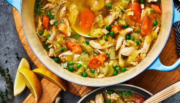 हे साधे सूप भाज्या आणि तुकडे केलेले टर्कीने भरलेले आहे, जे सुट्टीनंतर योग्य बनवते. परमेसन रिंड घातल्याने उमामीची समृद्ध चव मिळते.