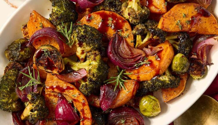 या बाल्सॅमिक भाजलेल्या भाज्या शरद आणि हिवाळ्यातील आवडींना एका उत्साही, चवीने भरलेल्या साइड डिशमध्ये एकत्र आणतात. बटरनट स्क्वॅश, लाल कांदा, ब्रुसेल्स स्प्राउट्स आणि ब्रोकोली ताज्या औषधी वनस्पतींसह टँजी बाल्सॅमिक-डीजॉन ड्रेसिंगमध्ये फेकल्या जातात, नंतर कॅरमेलाइज आणि कोमल होईपर्यंत भाजल्या जातात. उच्च उष्णता नैसर्गिक गोडवा आणते, तर व्हिनेगर आणि मोहरी प्रत्येक चाव्याला चमकदार आणि चवदार ठेवते. ही सोपी साइड डिश आठवड्याच्या रात्रीच्या जेवणासाठी आणि सुट्टीच्या टेबलांसाठी योग्य आहे!