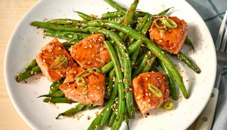 हे वन-पॅन सॅल्मन आणि ग्रीन बीन्स डिनर एक जलद आणि निरोगी जेवण आहे जे जलद एकत्र येते. सॅल्मनचे तुकडे मॅरीनेट केले जातात आणि कोमल, फ्लॅकी परिपूर्णतेसाठी शिजवले जातात. ताज्या हिरव्या सोयाबीन त्याच पॅनमध्ये शिजवल्या जातात, गोड आणि चवदार पॅन सॉस भिजवतात. किमान स्वच्छता आणि जास्तीत जास्त चव असलेले हे आठवड्याचे रात्रीचे जेवण आहे.