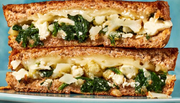 या फुलकोबीचा स्पॅनकोपीटा वितळणे म्हणजे स्वप्न सत्यात उतरवणे! हे ग्रीक पालक पाई, स्पॅनकोपिटा, ग्रील्ड चीज सँडविचच्या हाताने ठेवलेल्या आरामात आणि सोयीमध्ये मिसळते. चिरलेली भाजलेली फुलकोबी हेल्दी, व्हेज-पॅक्ड ट्विस्ट आणते.