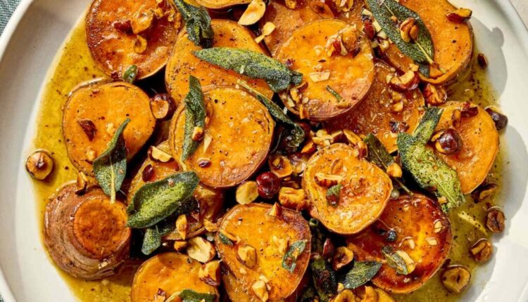 ही सोपी साइड डिश बनवायला फक्त 40 मिनिटे लागतात पण तुमच्या सुट्टीच्या टेबलावर शोभिवंत दिसतात. रताळ्याचे गोळे एकटेच भाजले जातात आणि नंतर मटनाचा रस्सा घालून मलईदार आतील भाग सुनिश्चित करतात. नंतर ते तपकिरी बटरने रिमझिम केले जातात आणि चिरलेली हेझलनट्स आणि कुरकुरीत ऋषी सह शीर्षस्थानी असतात जेणेकरून ते चवदार आणि सादरीकरणासाठी योग्य असतात.