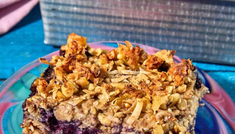 ब्लूबेरी-नारळ-अक्रोड भाजलेले ओटचे जाडे भरडे पीठ