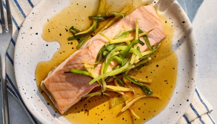 ही साधी जिंजर-स्कॅलियन सॅल्मन एक डिश आहे जी कमीत कमी प्रयत्नात मोठी चव देते. कोमल होईपर्यंत वाफवलेले आणि चटपटीत आले, स्कॅलियन्स आणि सुवासिक सोया-तीळ सॉससह समाप्त, ते तयारी जलद ठेवताना माशांच्या नैसर्गिक समृद्धतेवर प्रकाश टाकते. चायनीज नववर्षाच्या छोट्या, घरी उत्सवासाठी ही डिश सर्व्ह करा.