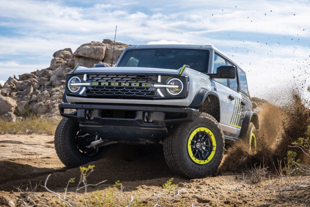 फोर्ड म्हणतो की हे “ब्रोंको लाइनअपमधील सर्वात अर्थपूर्ण इंटीरियर” आहे आणि ते का ते पाहणे सोपे आहे. ग्रीन स्टिचिंग सूक्ष्म तपशील जोडते, तर सीटबेल्ट आणि हँडल जबरदस्त न वाटता एक ठळक दृश्य विधान करतात. एका विशिष्ट व्यक्तिमत्त्वाची ओळख करून देताना डिझाइन ब्रॉन्कोचे खडबडीत पात्र अबाधित ठेवते.