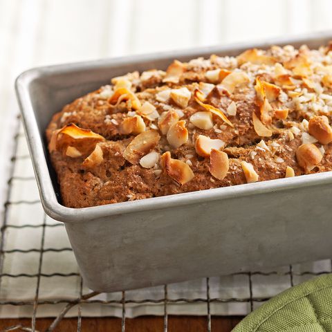 ही अष्टपैलू ब्रेड जाता-जाता न्याहारी, यजमानासाठी भेट किंवा सुट्टीतील भेटवस्तू आहे. त्यात तुम्हाला जे आवडते ते टाका आणि चॉकलेट चिप्स सारखे काही अतिरिक्त घटक देखील टाका. प्रत्येकाच्या मागे मिळू शकेल अशी ही भाकरी आहे. केळीची ब्रेड बेक करताना मध्यभागी एक तडा गेला पाहिजे – बेकिंग सोडा त्याचे कार्य करत असल्याचे चिन्ह. क्रीम चीज, ग्रीक दही किंवा पीनट बटरच्या स्मीअरसह टोस्ट केलेले सर्व्ह करा आणि इच्छित असल्यास, मिश्रित नट्ससह सर्व्ह करा.