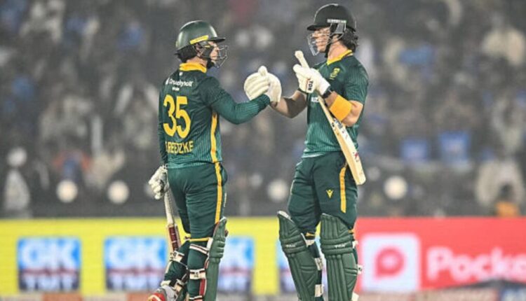 359 धावांचा पाठलाग करताना, दक्षिण आफ्रिकेने एडन मार्कराम (110) चे शानदार शतक, डेवाल्ड ब्रेव्हिसच्या 34 चेंडूत 54 (1x4s, 5x6s) आणि मॅथ्यू ब्रेट्झकेच्या 68 धावांच्या जोरावर आणखी एक उत्साही फलंदाजी प्रदर्शनात ओलांडली.