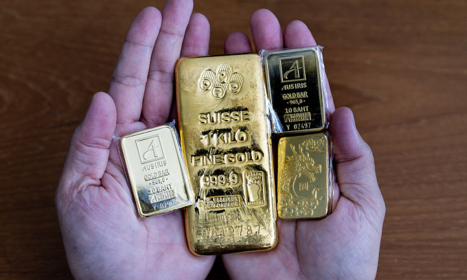 11 सप्टेंबर 2025 रोजी थायलंडच्या बँकॉक येथे एका गुंतवणूकदारास सोन्याचे सराफा होते, बहुतेकदा सोन्याचे बार म्हणून संबोधले जाते. एएफपीचा फोटो