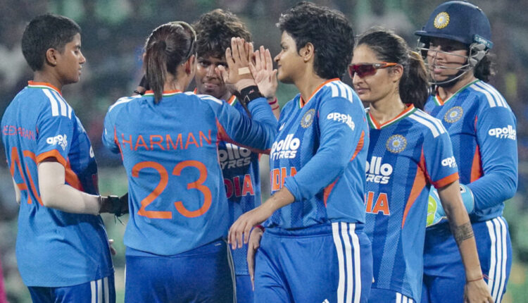 शेवटच्या दिशेने, ऋचा घोषने 16 चेंडूत नाबाद 40 धावा केल्या आणि कर्णधार हरमनप्रीत कौरने 9 चेंडूत नाबाद 16 धावा केल्या, कारण भारताने मोठी धावसंख्या उभारली.