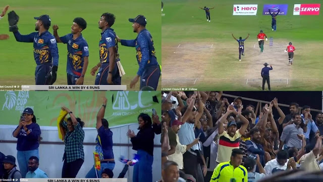 भारतीय संघाने आशिया कप रायझिंग स्टार्स 2025 च्या उपांत्य फेरीत सहज प्रवेश केला आहे. पाकिस्ताननेही भारताचा पराभव करून उपांत्य फेरीत प्रवेश केला होता. मात्र, उपांत्य फेरीत हे दोन्ही संघ कोणत्या संघाशी भिडणार हे अद्याप निश्चित झालेले नाही. आज या स्पर्धेतील महत्त्वाचा सामना श्रीलंका विरुद्ध बांगलादेश यांच्यात झाला. या सामन्यातूनच उपांत्य फेरीसाठी संघ निश्चित करण्यात आले आहेत. या सामन्यात दोन्ही संघांमध्ये चुरशीची लढत झाली आणि शेवटच्या षटकापर्यंत खेळ सुरूच होता. ज्यात श्रीलंकेने बांगलादेशचा शेवटच्या चेंडूपर्यंत एका रोमांचक सामन्यात पराभव केला आणि श्रीलंकेचा 5 धावांनी विजय झाला.