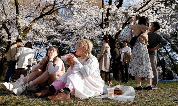 टोकियो, जपानमध्ये 20 मार्च 2023 रोजी लोक चेरी ब्लॉसमचा आनंद घेत आहेत. रॉयटर्सचा फोटो