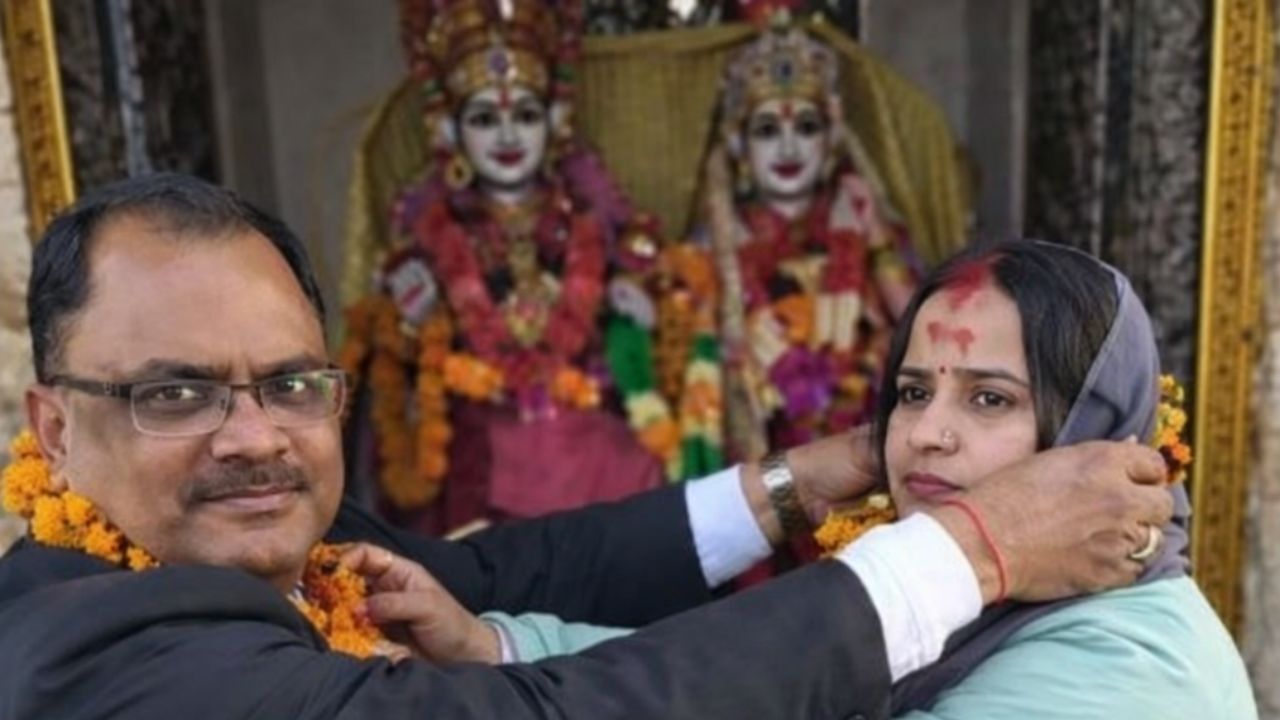 बिहार व्हायरल लग्न बातम्या: मुझफ्फरपूरची ही प्रेमकहाणी सध्या संपूर्ण परिसरात चर्चेचा केंद्रबिंदू बनली आहे. या प्रेमकथेने वयातील अंतर आणि सीमारेषाच तोडल्या नाहीत तर सामाजिक आणि कायदेशीर वादांनाही जन्म दिला आहे. वास्तविक, मुझफ्फरपूरच्या औरई पोलीस स्टेशन परिसरातील एका खाजगी शाळेचे प्राचार्य राकेश साह (60) यांनी त्यांच्याच शाळेतील 28 वर्षीय शिक्षिका शाइस्ता परवीनसोबत लग्न केले आहे.