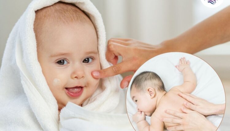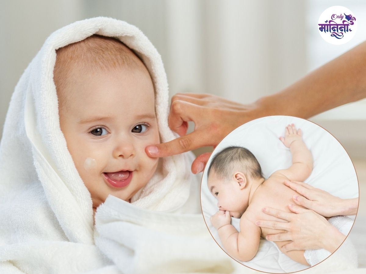 बाळाला आंघोळीपूर्वी खोबरेल तेल, बदाम तेल किंवा तिळाच्या तेलाने मालिश करू शकता. तसेच आंघोळीनंतर बाळाला नेहमी प्रिझर्व्हेटिव्ह्ज आणि सुगंध नसलेलं मॉइश्चरायझर लावावं.