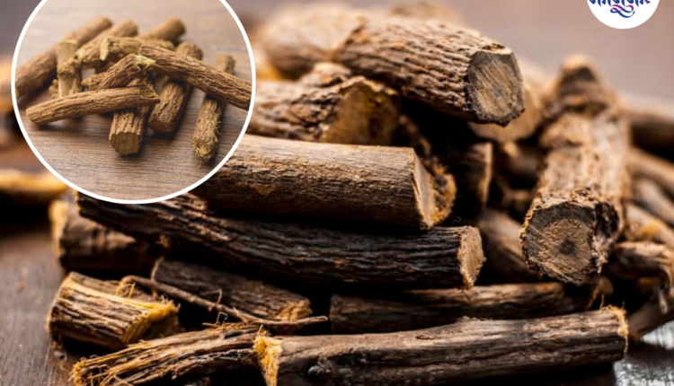 सध्या हिवाळा सुरू झाला आहे. सगळीकडे गुलाबी थंडी पसरली असून या काळात अनेक जणांना सर्दी, खोकला, घशाची खवखव यांसारख्या त्रासांना सामोरं जावं लागतं. थंडीच्या दिवसांत आरोग्याची विशेष काळजी घेणे अत्यंत गरजेची असते. अशा वेळी आपल्या घरात सहज मिळणारा एक छोटासा पदार्थ या त्रासांवर प्रभावी उपाय ठरू शकतो, तो म्हणजे ज्येष्ठमधाची काडी. थोडा वेळ ज्येष्ठमध खल्ल्याने घसा शांत होतो आणि सर्दी-खोकल्यावर नैसर्गिक दिलासा मिळतो. आयुर्वेदात औषधी गुणांनी समृद्ध मानले जाणारे ज्येष्ठमध हे आरोग्यासाठी अत्यंत उपयुक्त आहे. विशेषतः रोज थोडा वेळ ज्येष्ठमध खल्ल्याने शरीराला अनेक नैसर्गिक फायदे मिळतात. घसा, पचन, रोगप्रतिकारशक्ती ते तणाव कमी करण्यापर्यंत ज्येष्ठमधाचा प्रभाव दिसून येतो. कमी खर्चात, सोप्या पद्धतीने करता येणारा हा उपाय अनेक छोट्या-मोठ्या आरोग्य समस्यांवर गुणकारी ठरतो. अशाच ज्येष्ठमध खल्ल्याचे महत्त्वाचे फायदे जाणून घेऊया. (benefits of licorice for health in winter)