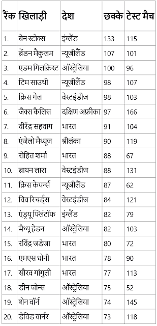 कसोटीत सर्वाधिक षटकार ठोकणारे टॉप 20 फलंदाज, या भारतीय खेळाडूंनी आपले स्थान निर्माण केले