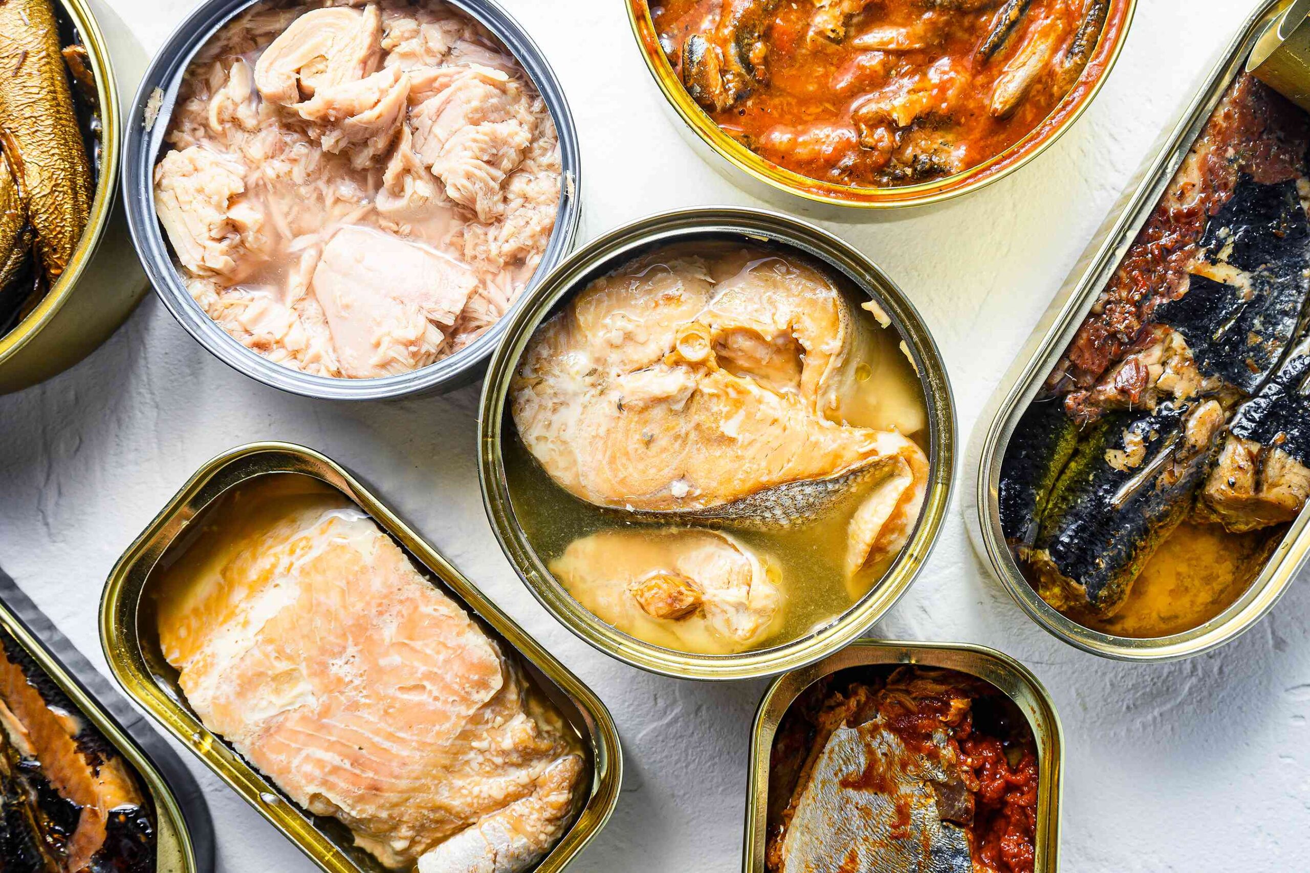 - 1 कॅन उच्च-गुणवत्तेचे टिन केलेले मासे (सार्डिन, मॅकरेल किंवा ऑलिव्ह ऑइलमध्ये ट्यूना)