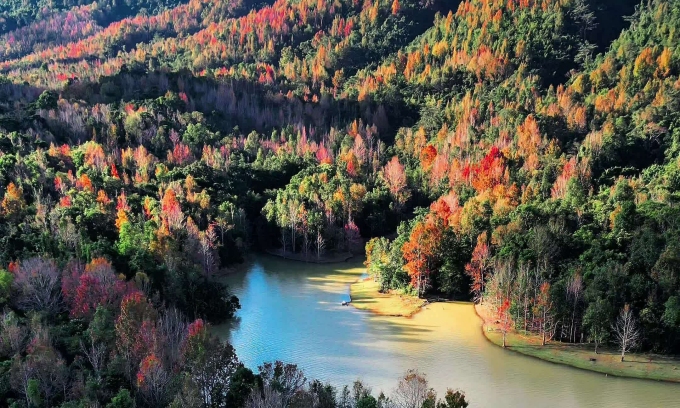 मध्य व्हिएतनाममधील खे सानच्या चायनीज गोड गम जंगलात डिसेंबरमध्ये लाल पर्णसंभार येतो, जेथे ट्रेकर्स राव क्वान तलावाच्या पाण्यात 14 किलोमीटरचा पायवाट आणि बोटीचा अवलंब करतात.