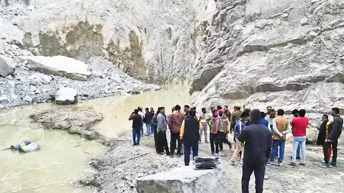 उत्तर प्रदेशात एका खाणीत भूस्खलन झाले.