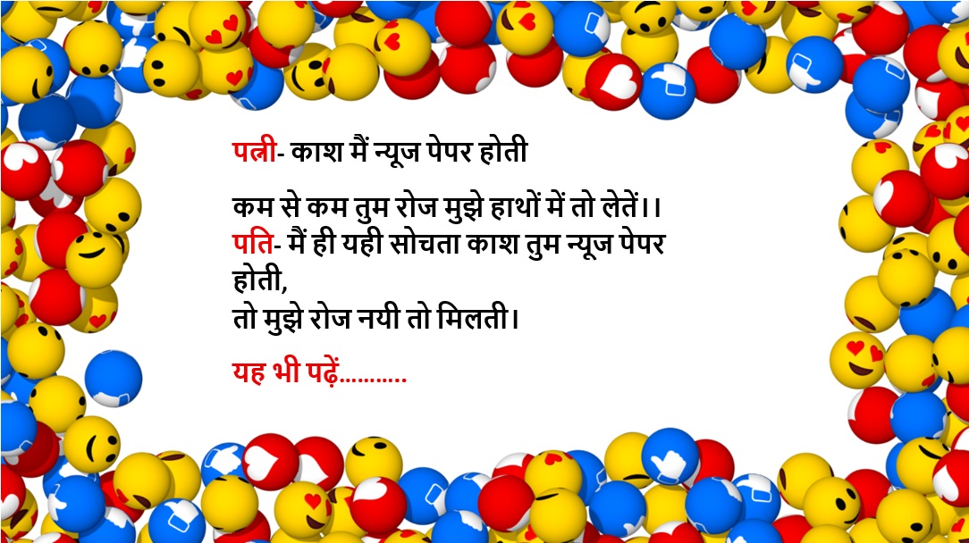 नवरा: माझी इच्छा आहे की तू वर्तमानपत्र आहेस.