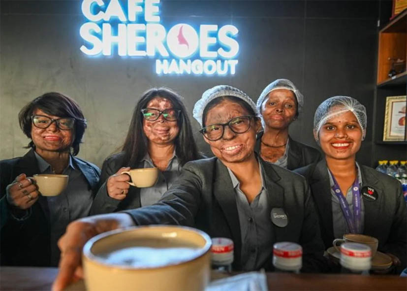 छन फाऊंडेशन नावाच्या संस्थेने या सर्व महिलांना केवळ पाठिंबाच दिला नाही तर त्यांना पुन्हा समाजात आपले स्थान निर्माण करण्यासाठी एक नवी दिशा आणि बळ दिले असल्याचे त्यांनी सांगितले. आज, आग्रा, लखनौ आणि नोएडाच्या शेरोज कॅफेसह 150 हून अधिक ॲसिड हल्ल्यातून बचावलेल्या महिला सन्मानाने काम करत आहेत आणि स्वावलंबी होत आहेत. 'Sheroes' या कॅफेचे नाव She आणि Heroes या दोन शब्दांनी बनलेले आहे, ज्याचा अर्थ स्त्री नायिका असा होतो. रुपा, अंशु, काजल आणि सीमा या पाच धाडसी महिला मिळून दिल्ली कॅफेचे व्यवस्थापन करत आहेत. रूपा सांगतात, “अपघातानंतर महिनोनमहिने तर कधी वर्षानुवर्षे आम्हाला आमचा चेहरा आरशात दिसला नाही. बाहेर जाणे तर खूप दूरची गोष्ट वाटत होती. पण आज आम्ही आमचा चेहरा लपवत नाही, तर अभिमानाने जगासमोर मांडतो. कष्ट करून आम्ही आमचे घर चालवत आहोत. ज्यांनी आमच्यासोबत हा गुन्हा केला आहे, त्यांचे चेहरे लपवले पाहिजे.”