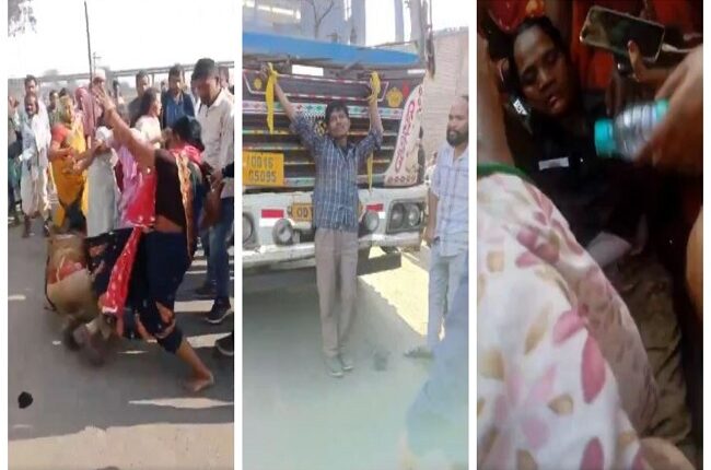 VIDEO: पोलीस आणि ग्रामस्थांमध्ये हिंसक चकमक, जमावाने महिला निरीक्षकाला मारली लाथा, कार पेटवली, ट्रक चालकाला घेतला ओलीस