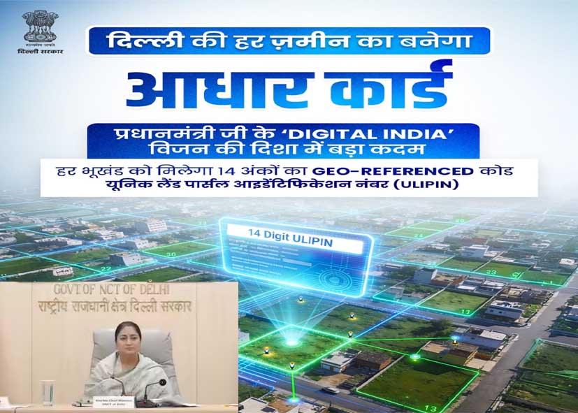 राजधानीतील प्रत्येक जमिनीला एक खास ओळख देण्यासाठी दिल्ली सरकारने पुढाकार घेतला आहे. आता प्रत्येक प्लॉटला 14 अंकी युनिक लँड पार्सल आयडेंटिफिकेशन नंबर (ULPIN) मिळेल. सरकारच्या म्हणण्यानुसार, या क्रमांकामुळे जमिनीच्या नोंदी डिजिटली सुरक्षित आणि व्यवस्थित राहतील, ज्यामुळे भविष्यात व्यवहार, ओळख आणि जमिनीशी संबंधित बाबी सुलभ होतील. राजधानीच्या जमीन व्यवस्थापन व्यवस्थेत पारदर्शकता आणि सुव्यवस्था आणण्याच्या उद्देशाने हे पाऊल उचलण्यात आले आहे. या पाऊलामुळे जमिनीचे वाद कमी होतील, पारदर्शकता वाढेल आणि भ्रष्टाचार थांबेल, असे मुख्यमंत्र्यांनी सांगितले. जमिनीचे वाद आणि गडबड यांच्या विरोधात हे एक मजबूत डिजिटल शस्त्र असल्याचे वर्णन करून ते म्हणाले की, पंतप्रधान नरेंद्र मोदी यांच्या डिजिटल इंडिया मोहिमेला पुढे नेण्यासाठी हा एक क्रांतिकारी प्रयत्न आहे.