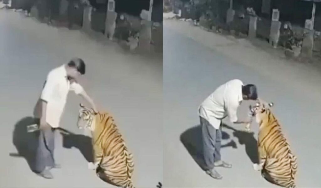 संपूर्ण खळबळजनक कथा – ज्याला सोशल मीडिया वापरकर्त्यांनी “शूर” आणि “वेडा” असे दोन्ही म्हटले आहे – पूर्णपणे बनावट आहे आणि व्हिडिओमधील वाघ किंवा माणूस दोघेही खरे नाहीत आणि ही घटना कधीही घडली नाही.