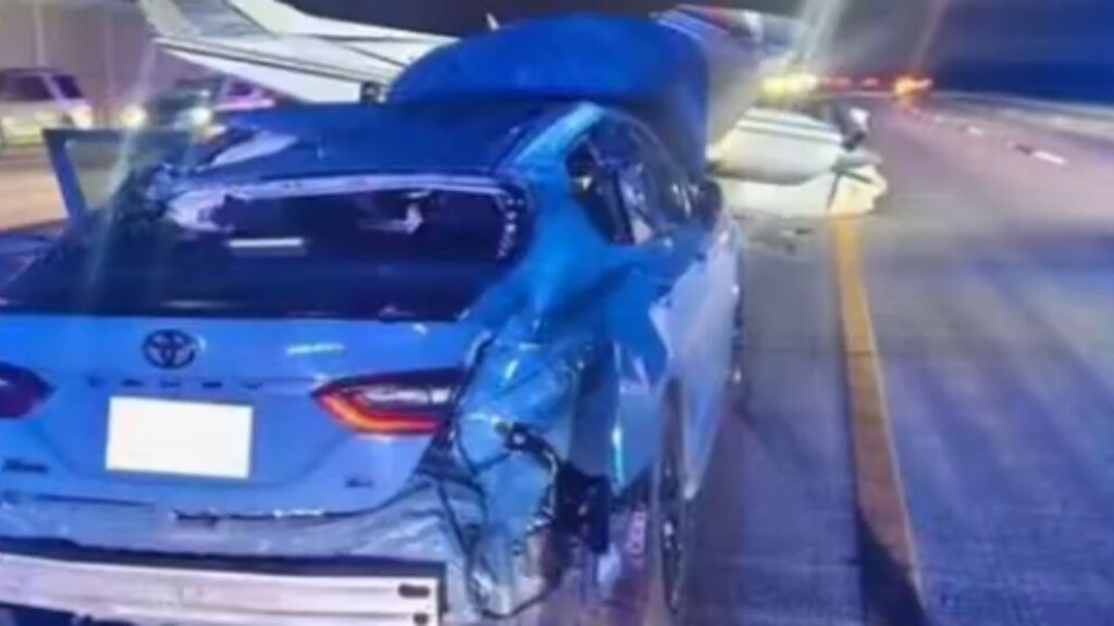- चालत्या टोयोटा कॅमरी कारवर अचानक विमान आदळले