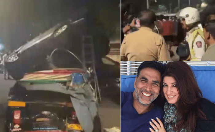 अक्षय कुमारच्या ताफ्यातील गाडीचा भीषण अपघात; अक्षय आणि ट्विंकल थोडक्यात बचावले.
