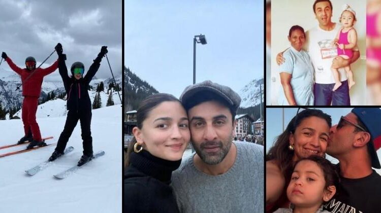 फोटोंच्या दुसऱ्या सेटमध्ये आलिया हिवाळ्यातील पोशाख घातली आहे, तर रणबीर राहाच्या बाजूला उभा आहे कारण ती लाकडी कुंपणाजवळ जमलेल्या लोकांच्या गटाकडे कुतूहलाने पाहत आहे.
