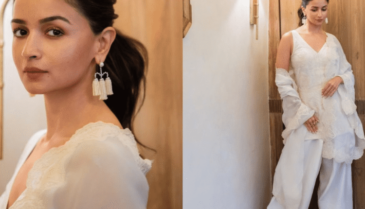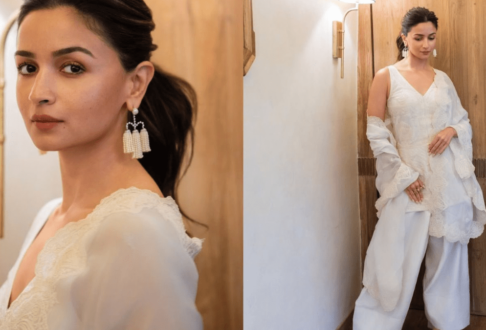 अभिनेत्री आलिया भट्ट अलीकडे एक अतिशय मोहक सर्व-पांढर्या फॅशन देखावा माझ्या स्टाइलने मी पुन्हा एकदा फॅशनप्रेमींचे लक्ष वेधून घेतले आहे. या लूकमध्ये ती तोराणी (प्रथा) च्या all-white Farshi salwar suit जे तिच्या स्टायलिस्टने अतिशय संतुलित आणि अभिजात पद्धतीने सादर केले होते.