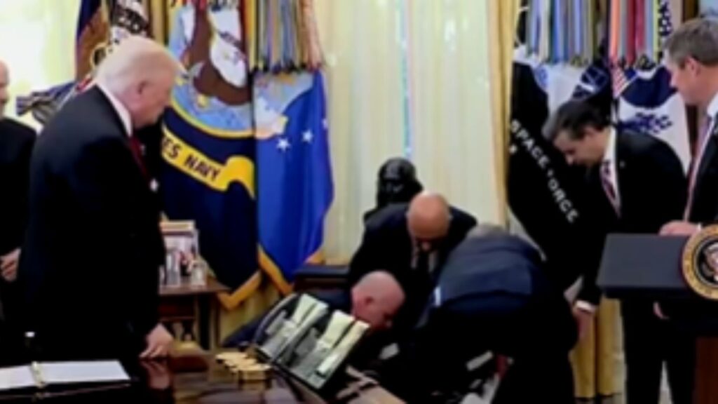 डोनाल्ड ट्रम्प: अमेरिकेचे अध्यक्ष डोनाल्ड ट्रम्प जगभरात लठ्ठपणाची वाढती समस्या पाहून एक मोठी घोषणा केली आहे. ओव्हल ऑफिसमध्ये लठ्ठपणा कमी करण्यासाठी औषधांच्या किमती कमी करण्याची घोषणा करण्यात आली. यादरम्यान एक गोष्ट घडली जी कॅमेऱ्यात कैद झाली आणि आता व्हायरल होत आहे.