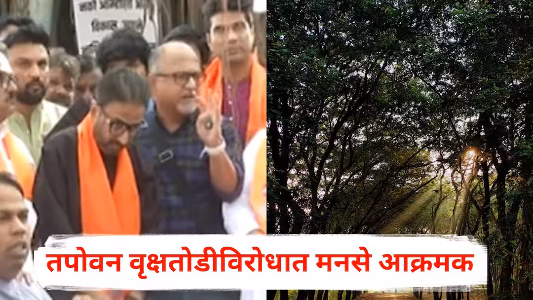 नाशिक वृक्षतोडीवर अमेय खोपकर : नाशिकमध्ये 2027 मध्ये होणाऱ्या सिंहस्थ कुंभमेळ्याच्या (Kumbh Mela 2027) तयारीला जोरदार सुरुवात झाली असली, तरी तपोवन (Tapovan) परिसरातील प्रस्तावित साधूग्राम (Sadhugram) प्रकल्पामुळे 1800 झाडांची तोड (Tree Cutting) होणार असल्याची माहिती समोर आल्यानंतर संतापाची लाट उसळली आहे. साधू-महंतांच्या तात्पुरत्या निवासासाठी 1150 एकरांवर साधूग्राम उभारण्याचे नियोजन असून, त्यासाठी मोठ्या प्रमाणावर वृक्षतोड करावी लागणार आहे. या निर्णयाचा नागरिक, पर्यावरणप्रेमी, स्थानिक संघटना, सेलिब्रिटींसह राजकीय पक्षांनी जोरदार विरोध केला आहे. या पार्श्वभूमीवर आज शनिवारी (दि. 06) महाराष्ट्र नवनिर्माण चित्रपट कर्मचारी सेनेकडून तपोवनात निषेध आंदोलन करण्यात आले. महाराष्ट्र नवनिर्माण चित्रपट कर्मचारी सेनेचे अध्यक्ष अमेय खोपकर (Amey Khopkar), अभिनेते संतोष जुवेकर यांच्यासह अनेक कलाकार या आंदोलनात सहभागी झाले होते. यावेळी अमेय खोपकर यांनी पार्थ पवार जमीन घोटाळा प्रकरणाचा धागा पकडत मुख्यमंत्री देवेंद्र फडणवीस यांच्यावर निशाणा साधलाय.
