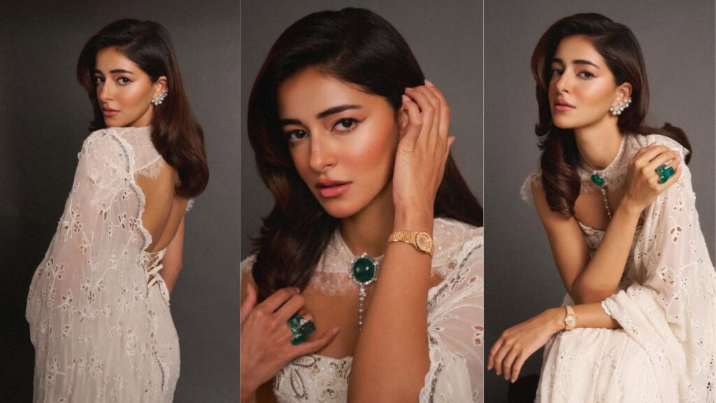 तिच्या पांढऱ्या कपड्यांमध्ये रंग भरण्यासाठी अनन्याने हिरव्या पन्नाच्या दगडांनी बनवलेले दागिने परिधान केले. तिने मोती आणि हिऱ्यांनी बनवलेला लांब हार आणि कानातले घातले होते, जे तिला आणखी रॉयल बनवत होते. तिचे केस मोकळे होते, हलके कुरळे केले होते आणि ते ब्लो-ड्राय करून आणखी सुंदर केले होते. एकंदरीत अनन्या जुन्या काळातील राणीसारखी दिसत होती. हा फोटो सोशल मीडियावर शेअर करताना अनन्याने लिहिले की, 'राणी गायत्री देवी नेहमीच माझ्यासाठी प्रेरणास्थान राहिली आहे. 1948 मधील विंटेज जॅक फथ हाउट कॉचर कॉर्सेट आणि मनीष मल्होत्रा लेस साडी, हे खरोखर एक स्वप्न होते. माझ्या संपूर्ण टीमने खूप मेहनत घेतली आहे.