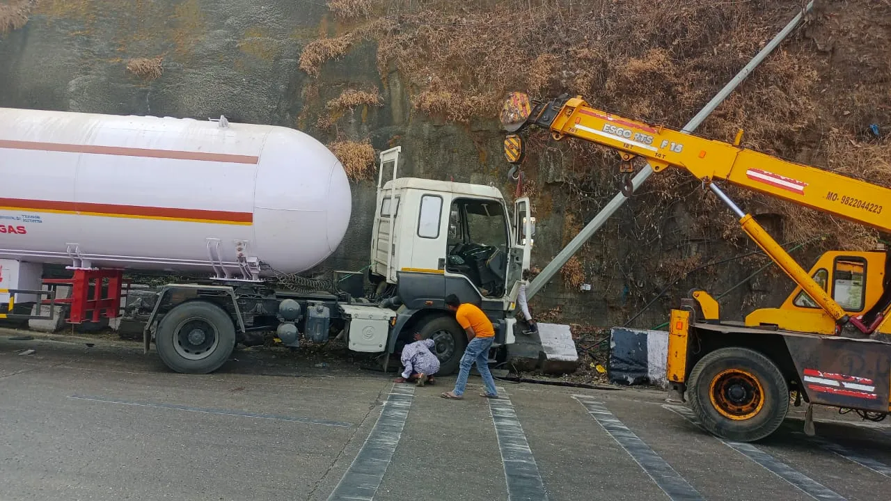 पुणे-मुंबई द्रुतगती महामार्गावर बोरघाटातील अमृतांजन पूल परिसरात कोचीहून गुजरातकडे 21 टन क्षमतेचा प्रोपिलीन गॅस वाहून नेणारा टँकरचे सकाळी सुमारे 10.00 वाजता बोरघाटातील तीव्र उतारावर ब्र्रेक अचानक निकामी झाल्याने अपघात झाला.  धोकादायक वळणे आणि खोल दरी असल्याने मोठा अनर्थ ओढवण्याची भीती निर्माण झाली असताना चालकाने प्रसंगावधान राखत टँकर रस्त्याच्या कडेला असलेल्या आरसीसी रिटेनिंग वॉलला जाणीवपूर्वक धडकवल्याने टँकर जागीच थांबला आणि संभाव्य स्फोट अथवा गॅसगळतीसारखी गंभीर दुर्घटना टळली. या धाडसी निर्णयामुळे मोठी जीवितहानी आणि पर्यावरणीय नुकसान होण्यापासून बचाव झाला.