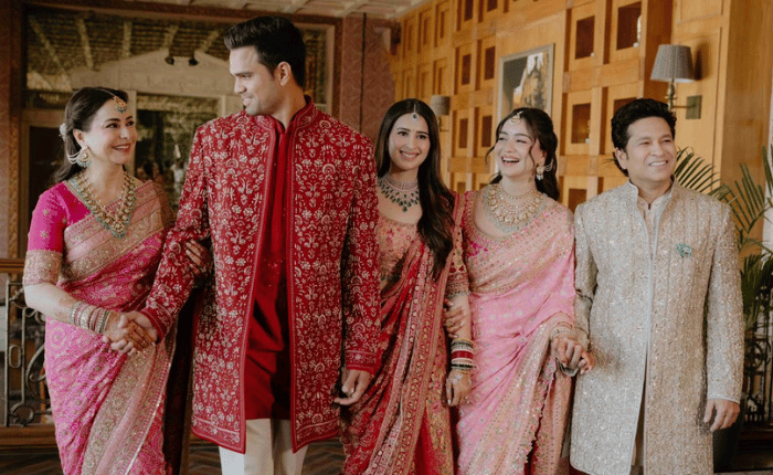 मास्टर ब्लास्टर सचिन तेंडुलकर याचा मुलगा अर्जुन तेंडुलकर हा सानिया चंडोकसोबत विवाह बंधनात अडकला आहे. . हा शाही विवाह सोहळा मुंबईतील वरळी येथील पंचतारांकित हॉटेलमध्ये येथे पार पडला. या लग्नसोहळ्याला दिग्गजांनी हजेरी लावली होती. लग्नसोहळ्याला सानियाने लाल रंगाची साडी नेसली होती तर अर्जुनने लाल रंगाची शेरवानी घातली होती. पारंपारिक मराठमोळ्या पद्धतीत हा विवाहसोहळा पार पडला.
