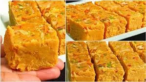 चौथी पायरी- आता 500 ग्रॅम साखरेमध्ये 200 ग्रॅम पाणी घालून 1 स्ट्रिंग सिरप तयार करा. आता सिरपमध्ये थोडा केशरी रंग घाला. भाजलेल्या बेसनाच्या मिश्रणात सरबत मिसळा. आता त्यात जायफळ, गदा आणि हिरवी वेलची पावडर घाला. सर्व साहित्य मिसळा आणि ट्रे ग्रीस करा आणि त्यात पिठ घाला.