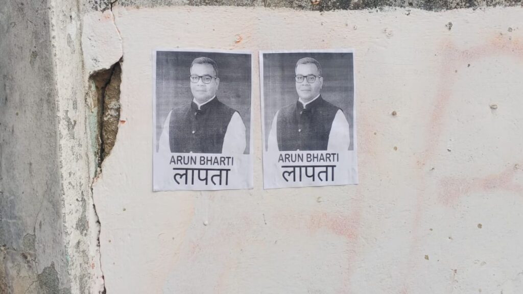 संजय सिंग/जमुई: Lok Janshakti Party (Ram Vilas) leader Chirag Paswan has a strong hold in central and state politics. But Akhil Bharatiya Vidyarthi Parishad in Jamui (अभाविप) चिराग पासवान यांचे मेहुणे आणि खासदार अरुण भारती बेपत्ता झाल्याची पोस्टर लावून कार्यकर्त्यांनी नवा राजकीय वाद निर्माण केला आहे.