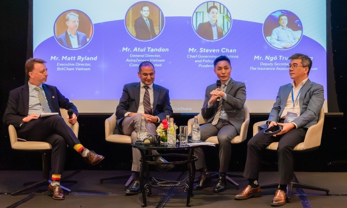 यूके-व्हिएतनाम बिझनेस समिट 2025 मध्ये स्टीव्हन चॅन (2रे, आर) आणि सहकारी तज्ञ “विमा एक आर्थिक वाढ इंजिन म्हणून आणि ग्राहक ट्रस्टसाठी एक उत्प्रेरक” यावर चर्चा करतात. फोटो सौजन्याने प्रुडेंशियल