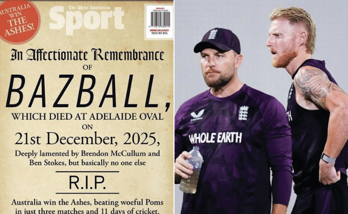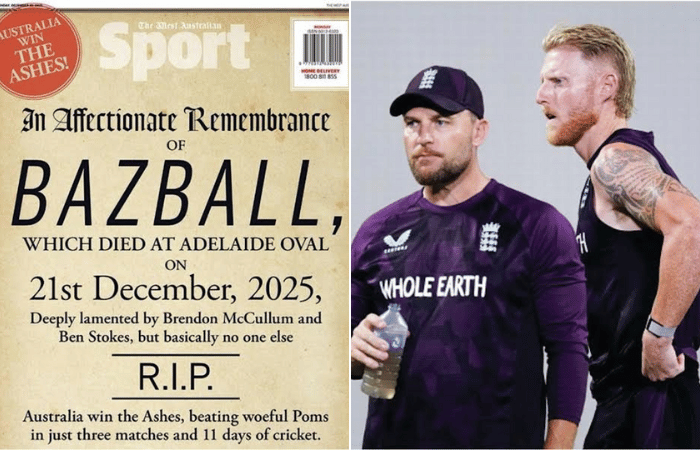 कधी घरच्या मैदानांवर प्रतिस्पर्ध्यांना दडपणाखाली आणणारी बॅझबॉलची रणनीती, परदेशी भूमीवर मात्र स्वतःच्याच संघासाठी ओझं ठरली. त्यामुळेच आज ऑस्ट्रेलियन मीडियाने मिश्किलपणे, पण नेमक्या शब्दांत ती पुरली.