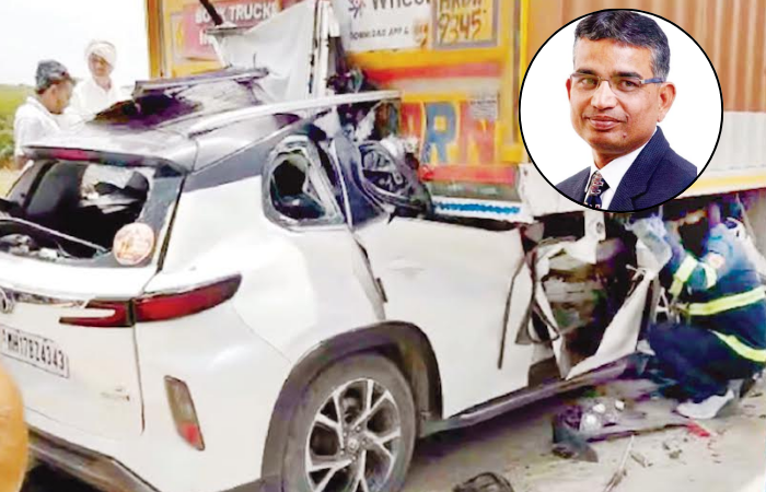 सिन्नरच्या मिरगाव येथे अशोक खरात हा संस्थापक अध्यक्ष असलेले शिवनिका ट्रस्ट आहे, त्याचा उपाध्यक्ष जितेंद्र गणपत शेळके हा शुक्रवारी छत्रपती संभाजीनगर येथून शिर्डी येथे टोयोटा हायरायडर कारने येत होता. समृद्धी महामार्गावर अहिल्यानगर जिह्यातील कोपरगावजवळील धोत्रे गाव परिसरात एक कंटेनर उभा होता. भरधाव वेगाने आलेली ही कार थेट कंटेनरखाली घुसली आणि हा भीषण अपघात झाला. जितेंद्र शेळके, त्याची पत्नी अनुराधा हे जागीच ठार झाले. मुलगा सुचित हा गंभीर जखमी असून त्याच्यावर उपचार सुरू आहेत. या अपघातात कारचा चक्काचूर झाला आहे.