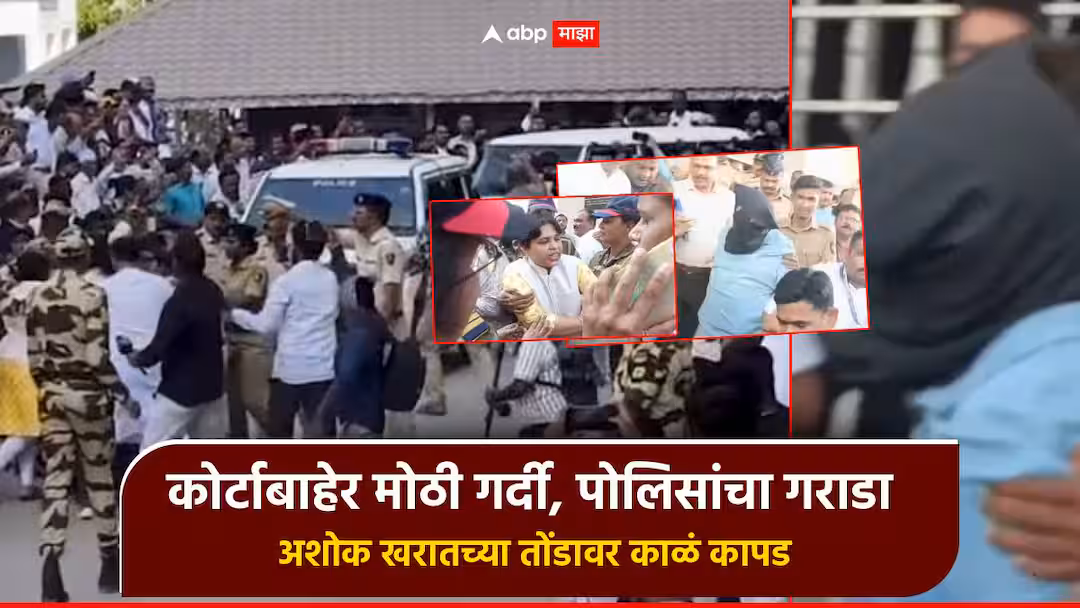 अशोकचं तोंड काळ्या कापडानं झाकलं, कोर्टाबाहेर मोठी गर्दी, पोलिसांचा तगडा बंदोबस्त; तृप्ती देसाईंचाही ठिय्या, फोटो