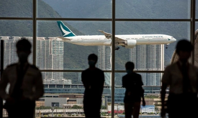11 ऑगस्ट 2021 रोजी कॅथे पॅसिफिक विमान हाँगकाँग आंतरराष्ट्रीय विमानतळावर उतरण्यासाठी आले. AFP द्वारे फोटो